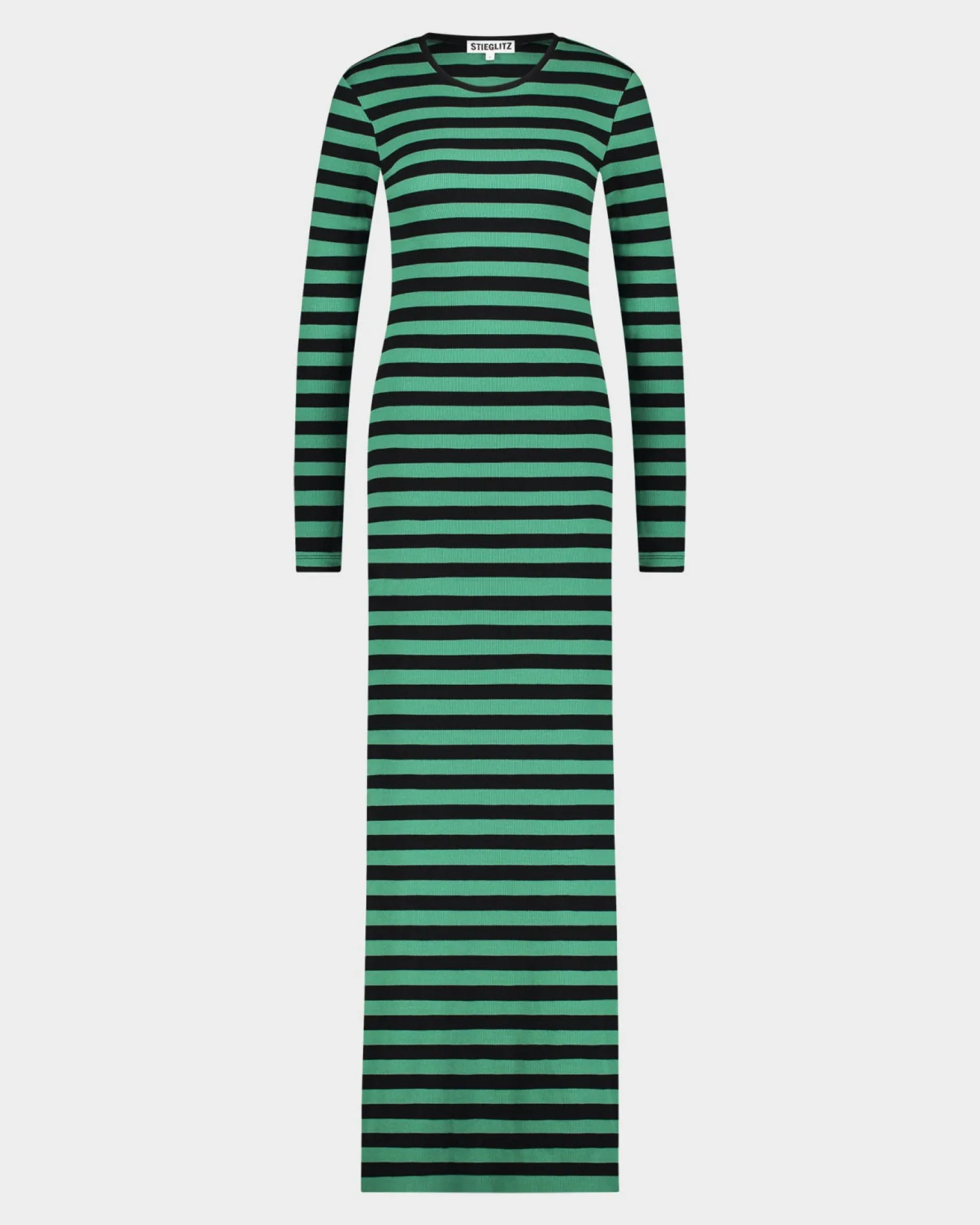 De Nayden Maxi Jurk heeft een vloerlange snit met grote, opvallende strepen en biedt zowel comfort als een coole uitstraling.